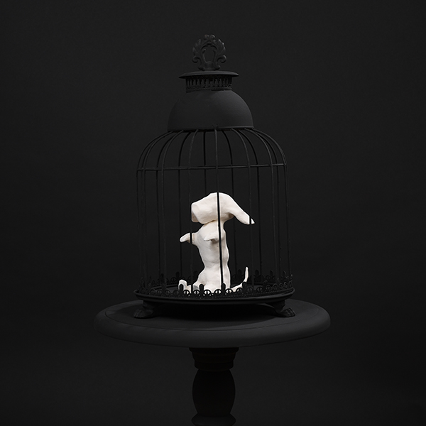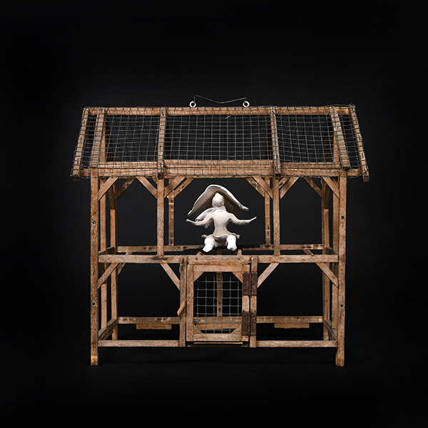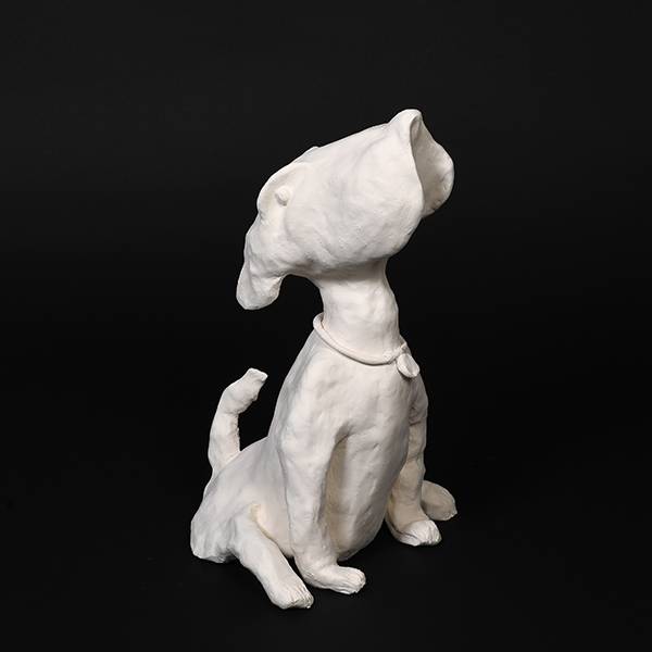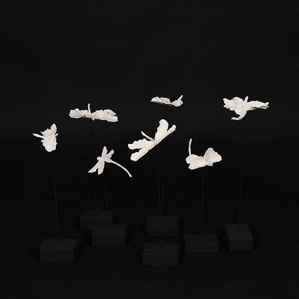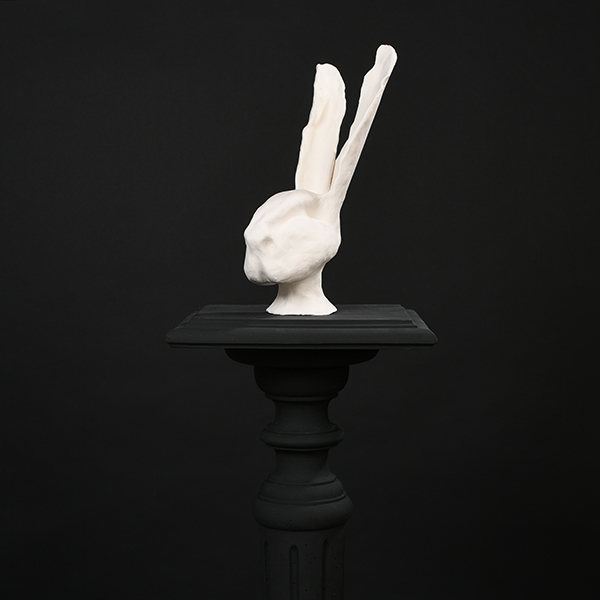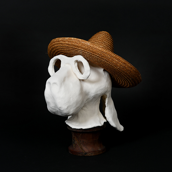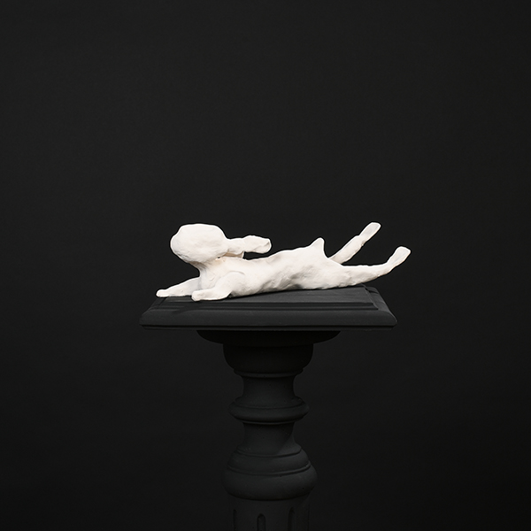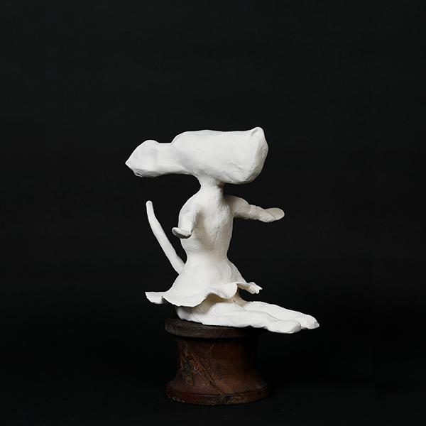 Aujourd'hui, mon imagination se pose encore ailleurs, la sculpture. Je travaille la faïence, c'est ce qui donne cet aspect brut et poudré...